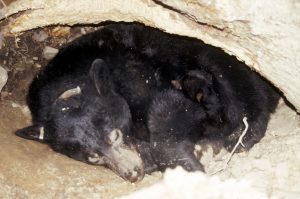 February at a Glance: Pregnant female black bears give birth. Cubs begin to grow. Bears snug in their dens live off fat reserves, recycle waste and by-products into useful amino acids and heal many injuries. Other bears don’t hibernate at all; they just reduce their activities and make day beds so they can take periodic naps. Dens turn into nurseries Pregnant female black bears give birth to an average of two to three cubs weighing less than a pound; they ...