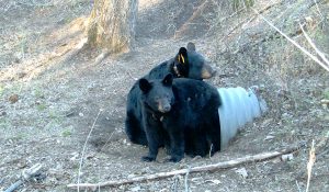 A culvert under a heavily-used road at a military training site made a cozy home for this enterprising bear family. (Minnesota Dept. of Natural Resources)