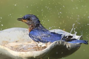 Birds need fresh water to drink and bathe, and are always on the lookout for dependable sources. Adding a simple bird bath, a fountain or a small pool with a bubbler to your garden is a sure-fire attractant. There are even water features that can be hung like a feeder. Birds are attracted to the sound of moving water; add a few flat “bathing” stones for birds.