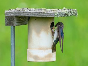 Several species of birds use nesting boxes, and many cavity-nesting birds now depend on them because there are far fewer standing dead trees. Nest boxes come in a variety of shapes and sizes designed to attract different species. Visit NestWatch.org for help finding the right boxes for the bird species nesting in your area.