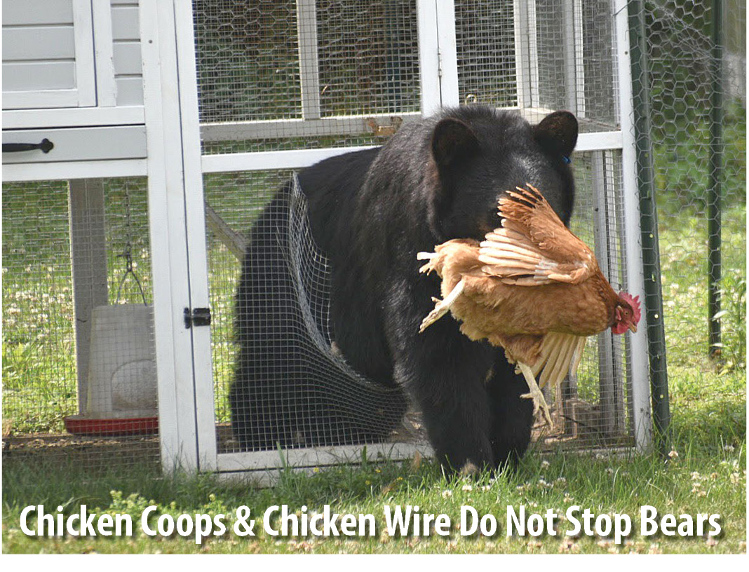 Bears that help themselves to easy chicken dinners often pay with their lives. There’s nothing sustainable or inspiring about that. Be BearWise and you can have chickens and eggs without endangering bears.