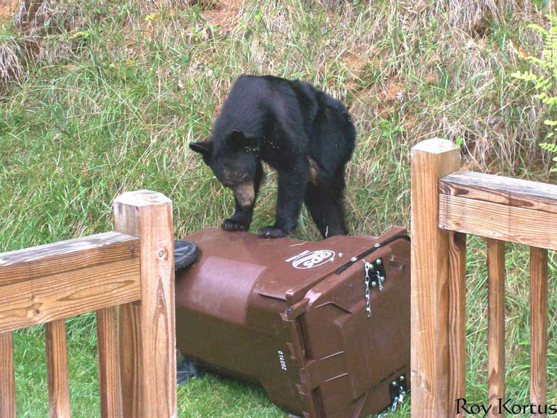 Normal trash cans, even with the lids on tight, offer little resistance to determined black bears.