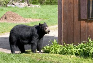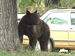 What should you do if you look out the window and there’s a black bear nosing around your bird feeder or trash, taking a dip in your swimming pool, or investigating something that looks or smells interesting? A. Call 911 B. Call the neighbors to come watch C. Offer food, the bear is probably hungry D. Make lots of noise and yell at the bear E. Encourage your dog to chase the bear If you picked D, good for you! ...