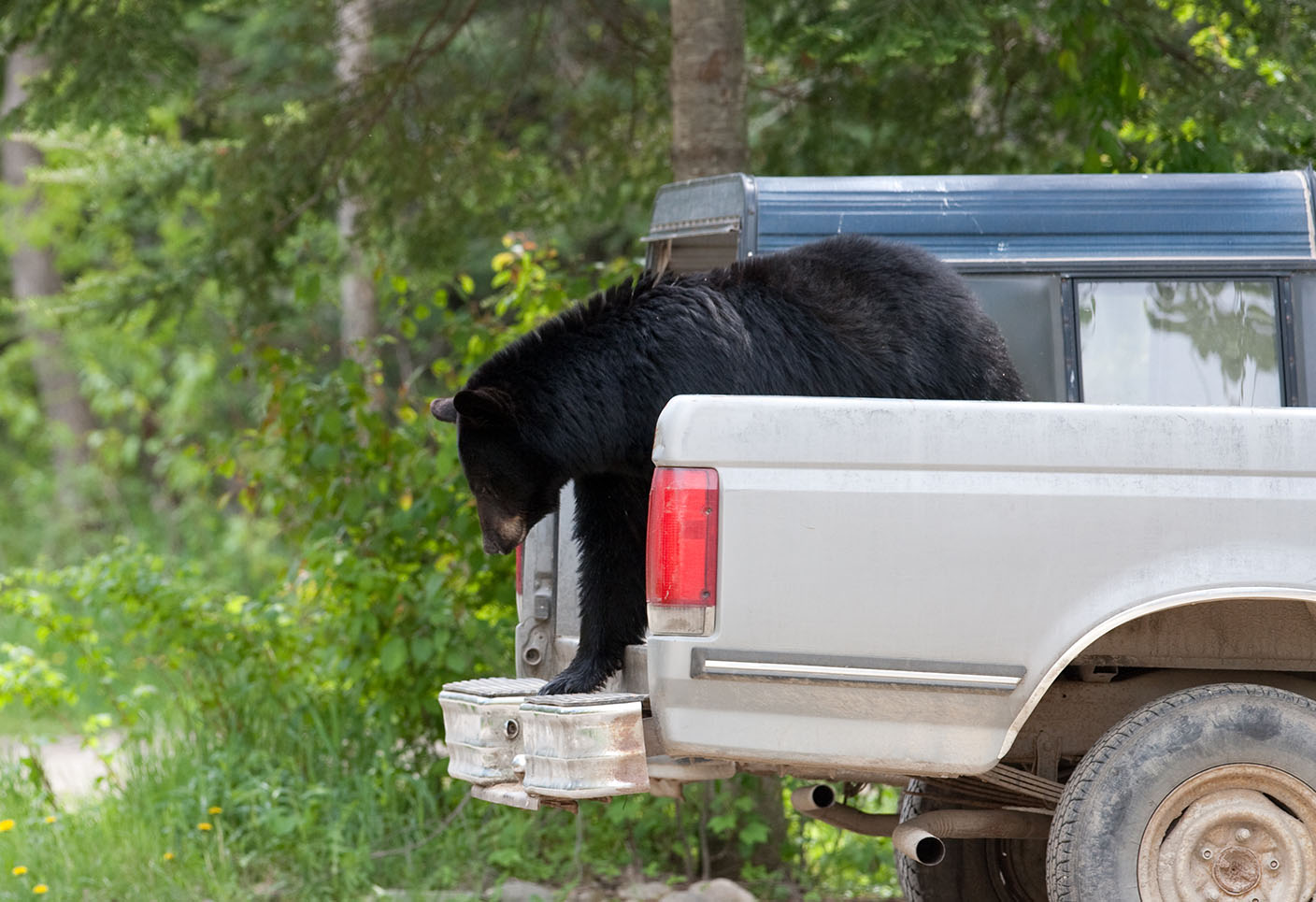 Store garbage and recycling where bears can’t smell or access it: either in a properly latched bear-resistant container or inside a bear-resistant building are the most effective options. Flimsy sheds are not bear-resistant. A pickup truck bed is not an option.