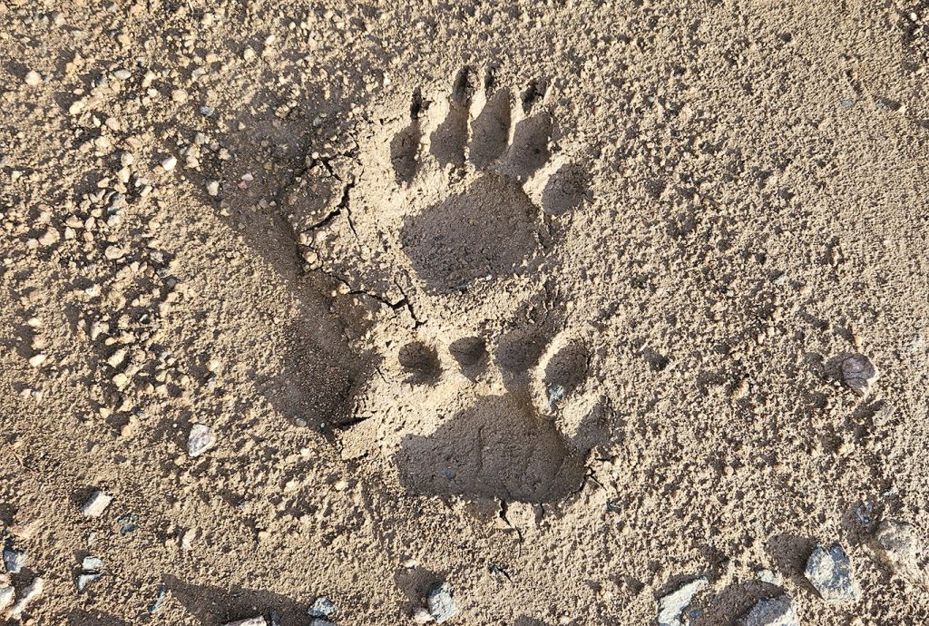 If you draw a straight line just above the toe pad (see illustration above) and all the toes are above the line, it’s likely a grizzly bear. If one toe falls below the line, it’s probably a black bear.